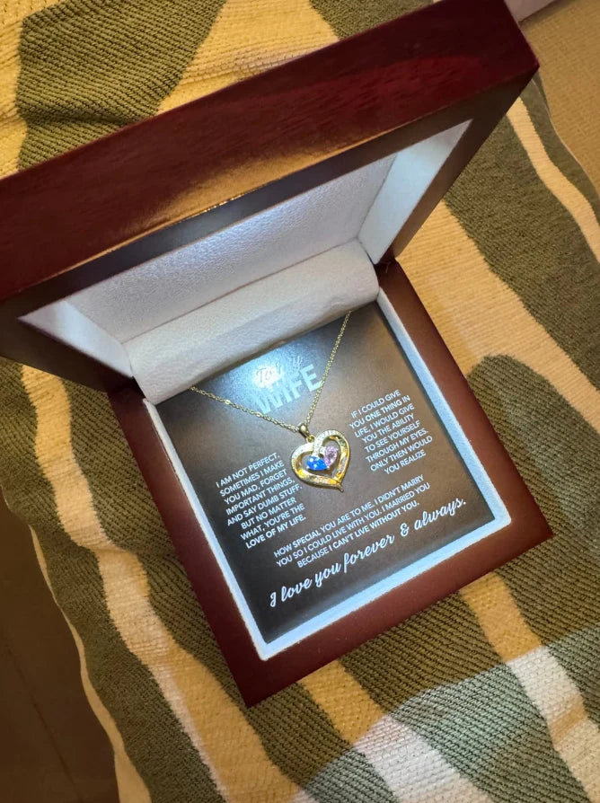 The necklace comes with a pre-set heartfelt message, but it’s chosen to perfectly express love for your wife.